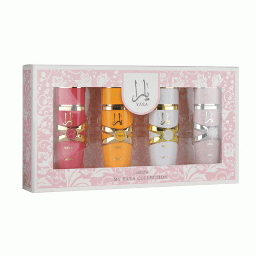 ست ادکلن مای یارا کالکشن لطافه lattafa my yara collection یک ست عطر چهار تکه درخشان است که با چهار رایحه محبوب در بطریهای ۲۵ میلیلیتری کاملاً قابل حمل ، تمام جنبه های زنانگی را گرامی میدارد. این مجموعه ، از عطری عشوه گرانه تا پیچیده ، هدیهای بینظیر – یا لذتی شخصی – برای زنانی است که عاشق تنوع ، سرزندگی و عطری فراموشنشدنی هستند.
