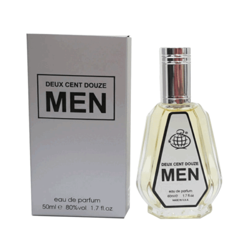ادکلن 50 میل فراگرنس ورد مدل دیوکس سنت دوز من Deux Cent Douze Men توسط برند اماراتي و خوشنام Fragrance World طراحي و به بازار عرضه شده است.عطر مردانه فراگرنس ورد مدل Deux Cent Douze Men از عطر 212 برند کارولینا هررا الهام گرفته شده است. ساختار رایحه ادو پرفیوم مردانه فراگرنس ورد مدل Deux Cent Douze Men ادویه و گیاهان معطر و نوع آن تند و تلخ و خنک است.